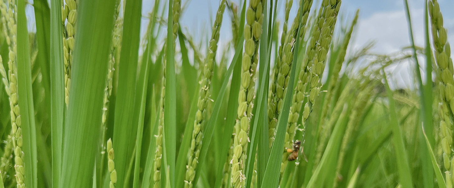 「稲にミツバチは来ないのがあたりまえで、皆ミツバチが来たと言うとびっくりします。稲にミツバチが来るとは夢にも、、、!」